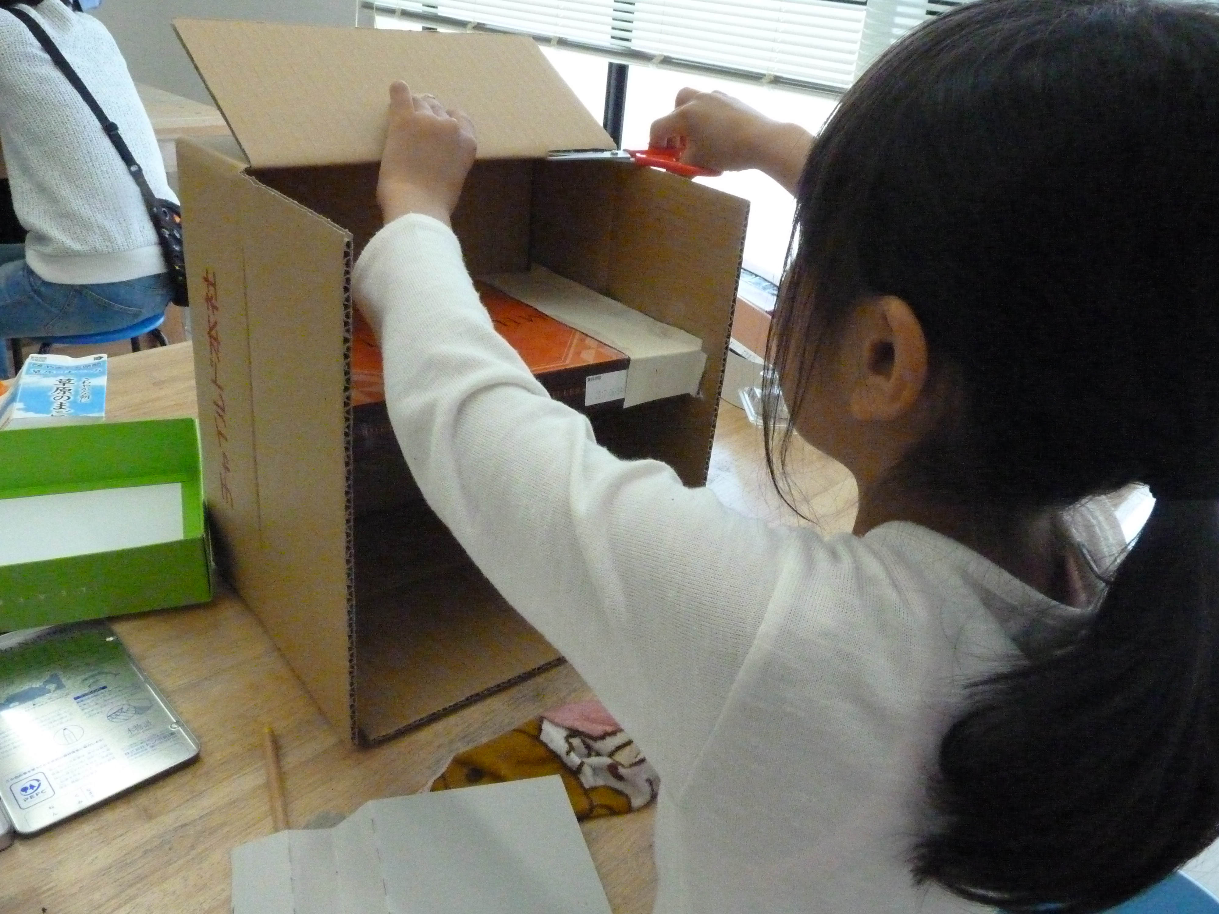 空き箱などの廃材を使って自由に工作を楽しむことが…